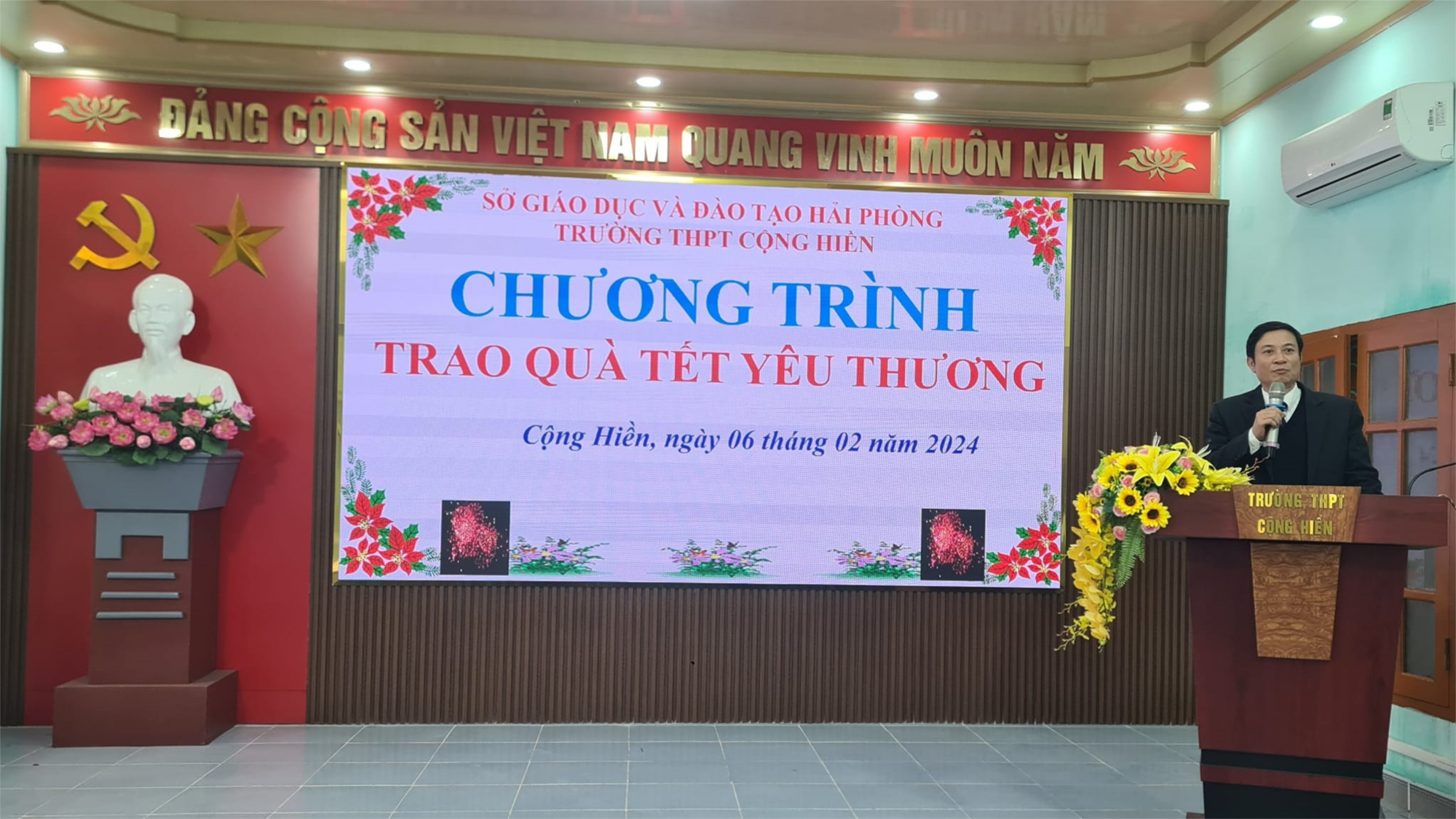 Sáng ngày 06/02/2024, các thầy cô trong BGH, bác trưởng ban CMHS nhà trường đã trao những phần quà " Tết yêu thương" cho 50 học sinh " vượt khó vươn lên" từ nguồn huy động trong chương trình " Tết yêu thương Giáp Thìn 2024" sáng ngày 05/02/2024. Đại diện ngân hàng Agribank chi nhánh Nam Am- Đông Hải Phòng cũng trao 11 phần quà " Tết yêu thương" cho 11 học sinh có hoàn cảnh đặc biệt khó khăn vươn lên trong học tập. Món quà tuy nhỏ nhưng là nguồn động viên lớn cho các em cùng gia đình đón tết sum vầy ấm áp trong tình yêu thương của mọi người, là động lực để các em tiếp tục nỗ lực, cố gắng khắc phục hoàn cảnh để vươn lên chăm ngoan, học giỏi hơn nữa.